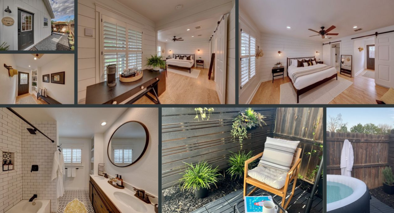The Wanderer is a charming one-bedroom bungalow designed for travelers who like to settle in and stay awhile. Featuring a full kitchen with art-filled dining and living area, Klipsch sound system and bedroom with luxury linens and sofa bed for reading or working. Let the relaxed pace of Comfort, Texas, catch up to you.